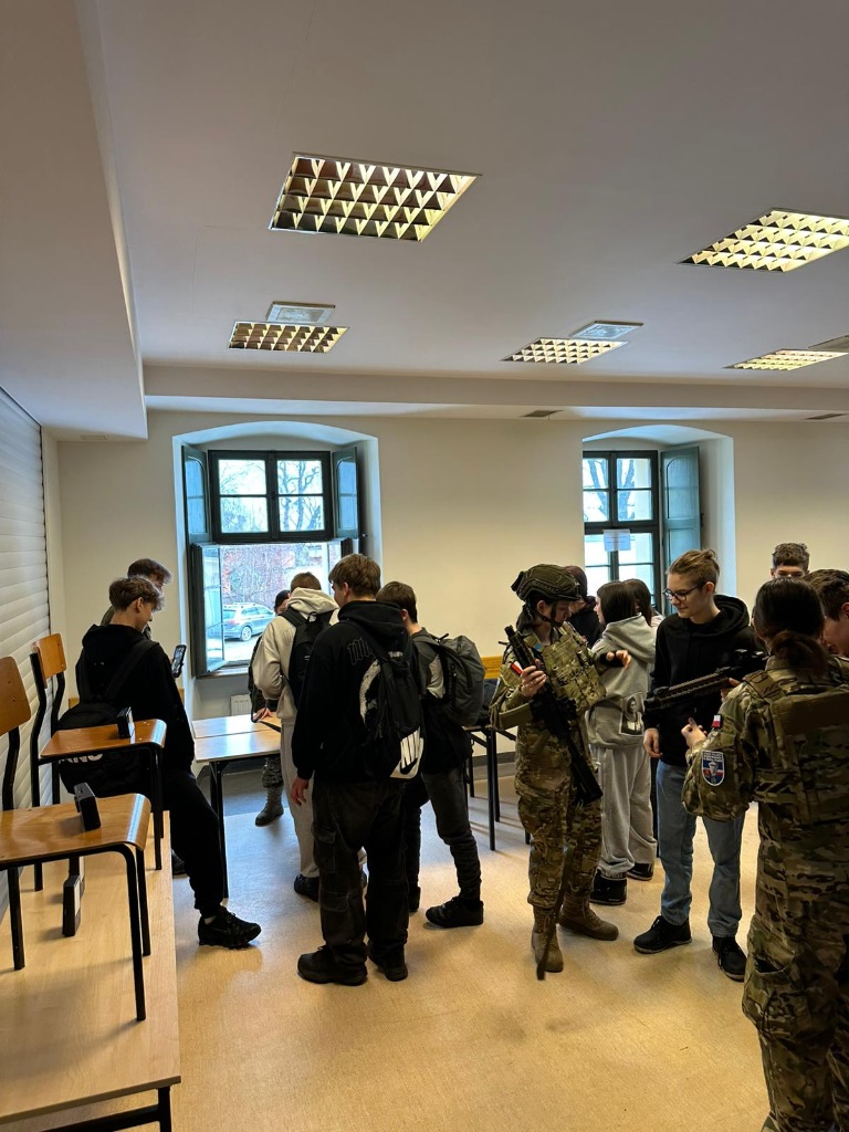 🎓 Uczniowie klas 8A, 8B, 8C oraz 7B wzięli udział w zajęciach edukacyjnych w 1 LO CN-B im. Polskich Spadochroniarzy w Gdańsku. Lekcje poświęcone były szeroko rozumianemu bezpieczeństwu oraz kształtowaniu postaw odpowiedzialności i gotowości do działania w sytuacjach zagrożenia.
