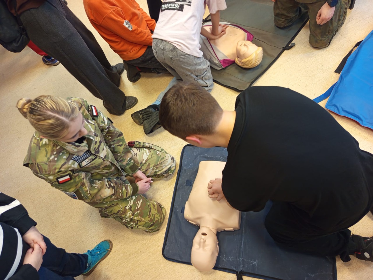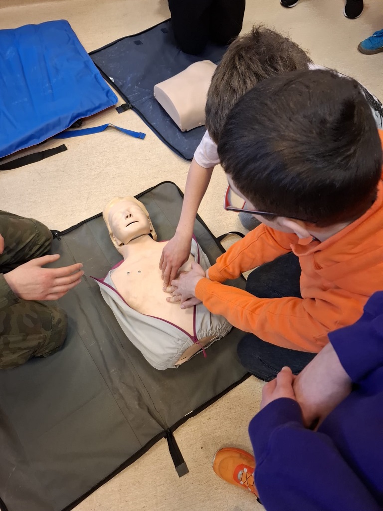 🚑 Ważnym elementem zajęć było kształtowanie umiejętności z zakresu podstaw pierwszej pomocy. Uczniowie przypomnieli i przećwiczyli najważniejsze czynności ratujące życie, ucząc się prawidłowego reagowania w nagłych wypadkach.
