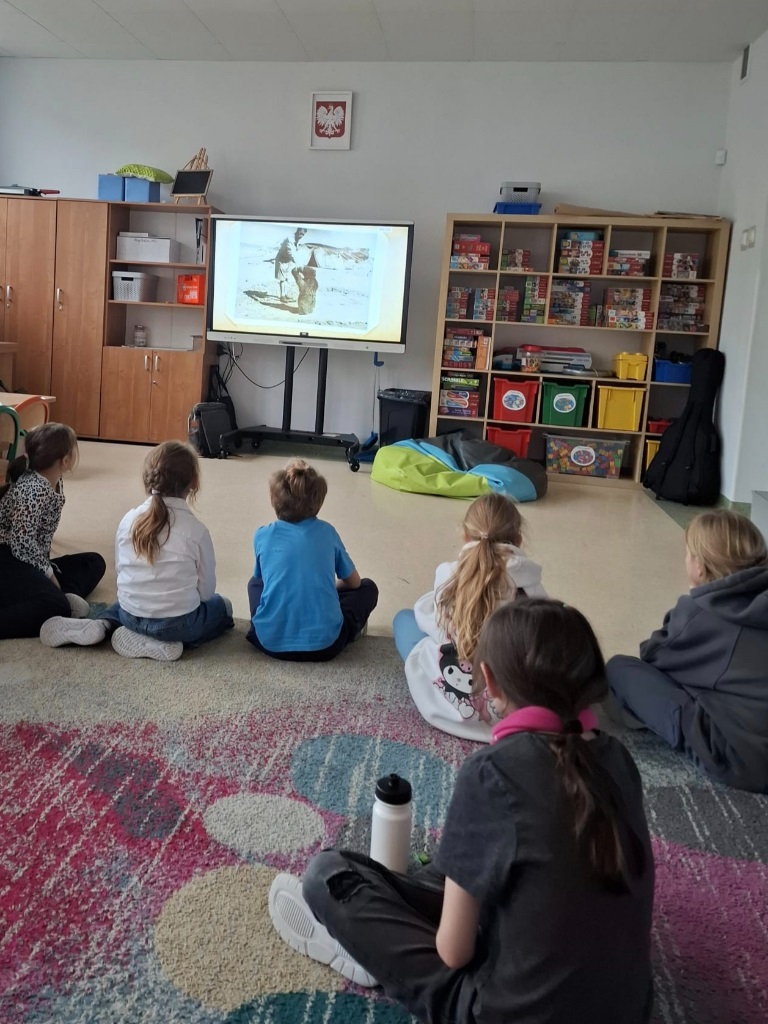 Następnie wszyscy wspólnie kolorowali misiowe kolorowanki, tworząc barwne i wesołe prace. Niektórzy uczniowie spróbowali również swoich sił w bardziej nietypowej technice – rysowali misie na specjalnym papierze, a później obserwowali, jak ich prace „rosną” po polaniu wodą.