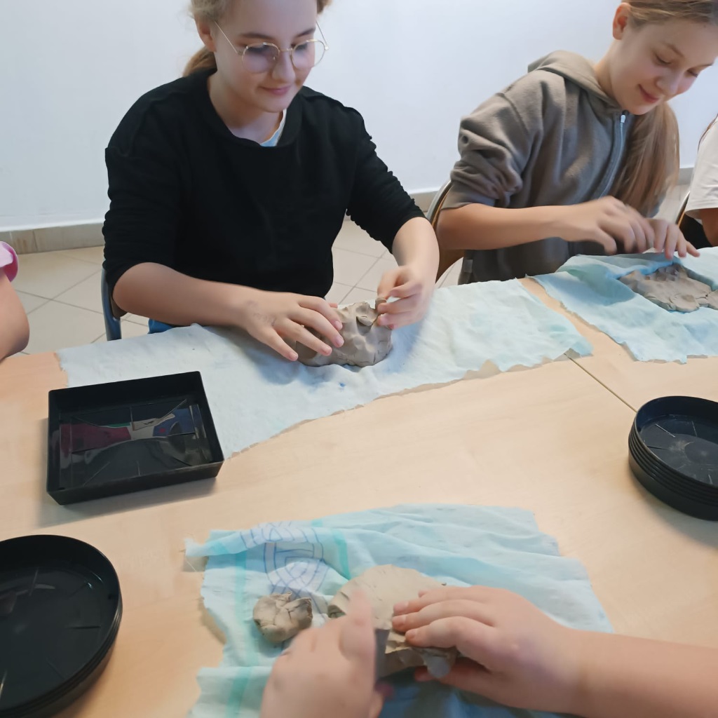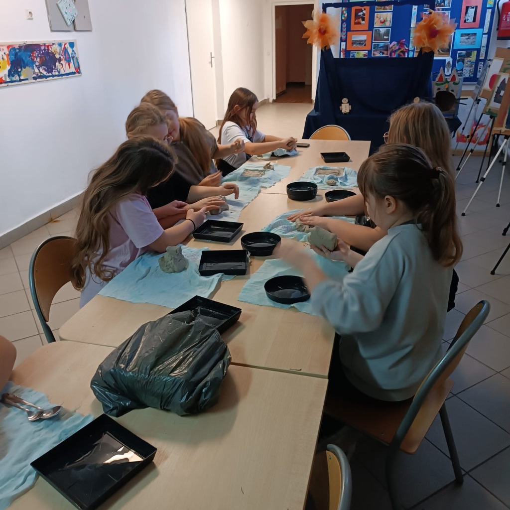 13 stycznia odbyły się zajęcia w klasie 4A. Jak zawsze było kreatywnie i bardzo wesoło. Tym razem pracowaliśmy z gliną. Dzieci wykonywały płaskorzeźby, które w kolejnym etapie zostaną zalane formą z gipsu ceramicznego. Następnie, z powstałego odlewu wykonamy kolejny, finalny odlew – gotowy wyrób z gipsu ceramicznego. Zapowiada się dużo radości i świetnej zabawy!