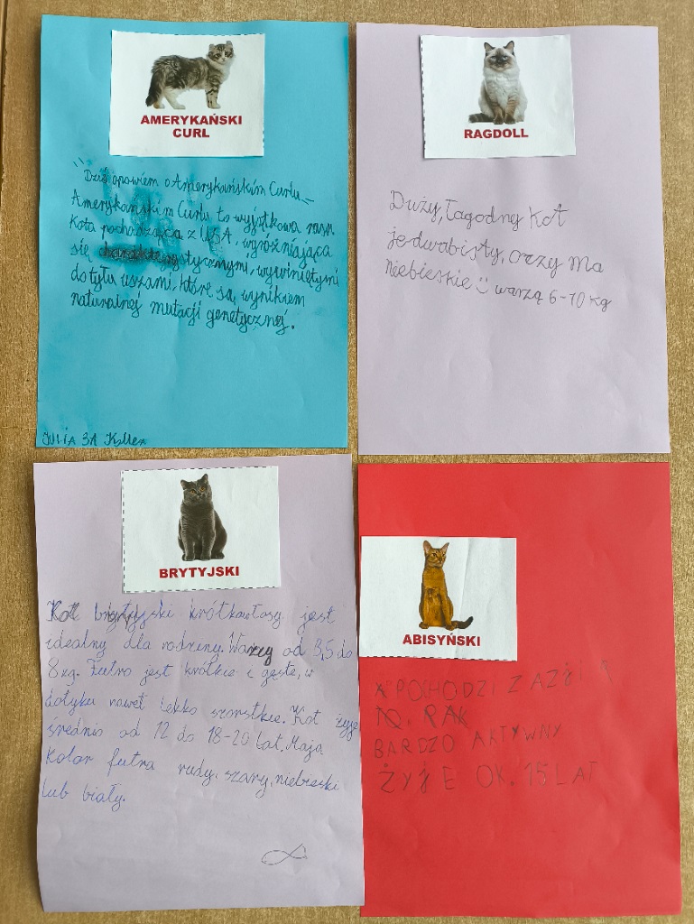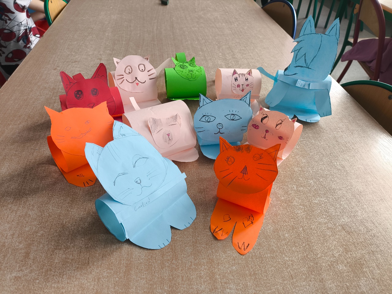 Wykonały kolorowe koty z papieru, poznały wiele ciekawostek o tych zwierzętach oraz przygotowały plakaty poświęcone kotom. To był dzień pełen radości i kreatywnej zabawy.