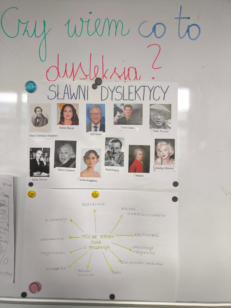 Z okazji Europejskiego Tygodnia Świadomości Dysleksji uczniowie naszej szkoły rozmawiali o tym, czym jest dysleksja. Poznali nie tylko wyzwania, z jakimi mierzą się osoby z dysleksją, ale także ich mocne strony i sylwetki znanych dyslektyków, którzy odnieśli sukces.