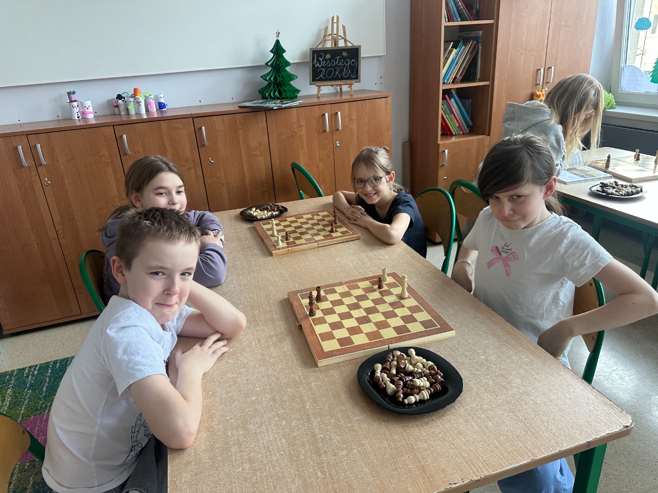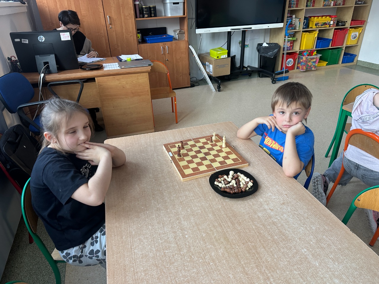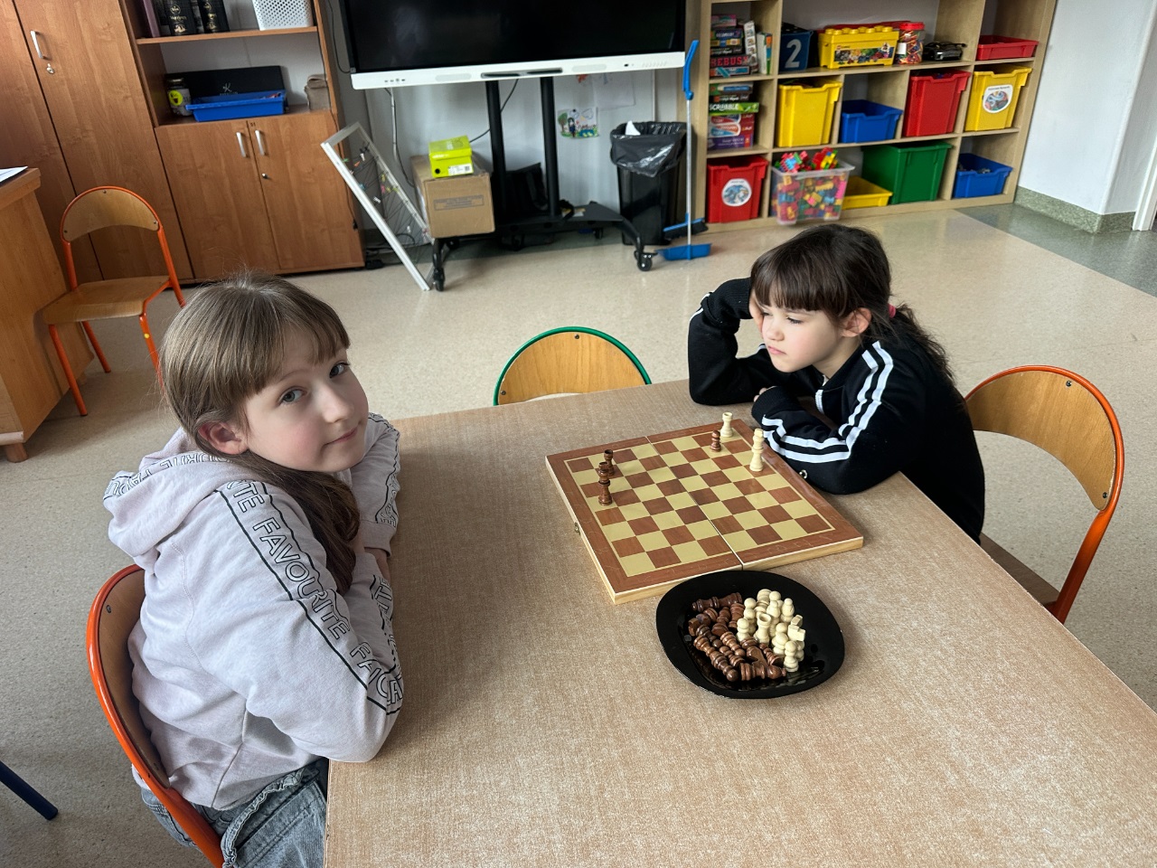 Podczas ostatnich zajęć szachowych w świetlicy uczniowie odkrywali jedną z najbardziej ekscytujących zasad gry – promocję pionka, czyli chwilę, gdy po dotarciu do końca szachownicy może on stać się królową, wieżą, gońcem lub skoczkiem.
