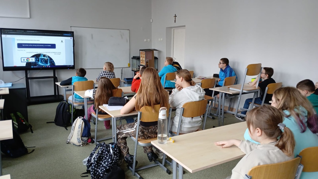 Podczas lekcji dzieci dowiedziały się m.in., jak chronić swoje dane, unikać zagrożeń w sieci oraz na co zwracać uwagę, aby nie dać się oszukać w cyfrowym świecie.