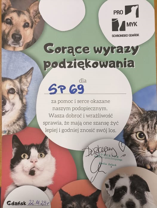 Składamy serdeczne podziękowania wszystkim Uczniom oraz Rodzicom za przyniesienie karmy dla zwierząt. Dzięki Waszej dobroci i zaangażowaniu mogliśmy przekazać ją do schroniska Promyk, wspierając zwierzęta, które najbardziej tego potrzebują.