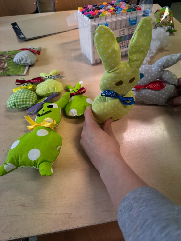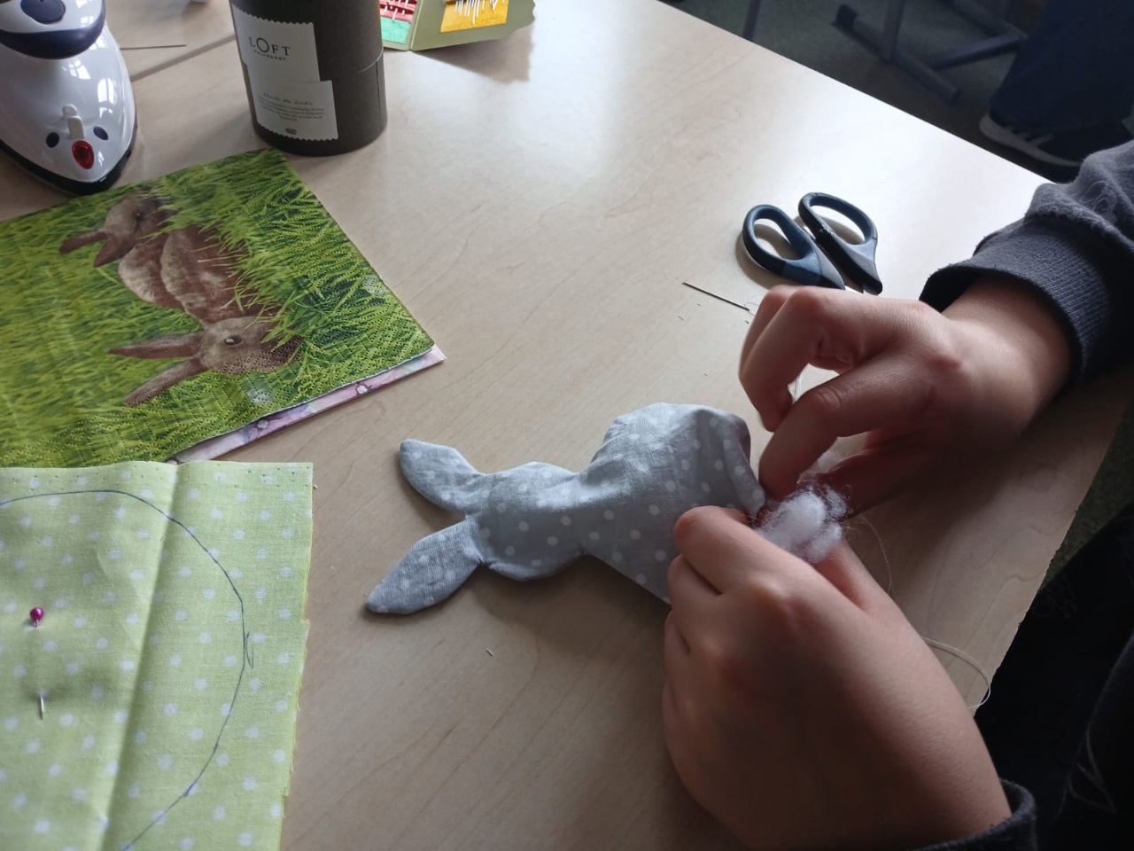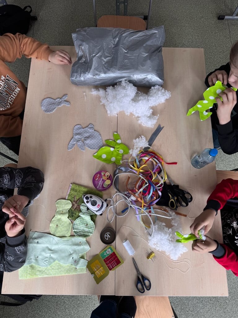 Choć tym razem była tylko męska ekipa, chłopcy świetnie poradzili sobie z zadaniem – szyciem świątecznych zajączków.